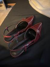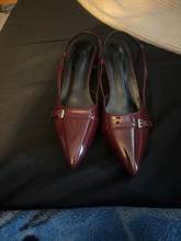 beautiful shoes and are true to size, small kitten heels. I'm a 7 1/2 and ordered a 38. good shoe for the price